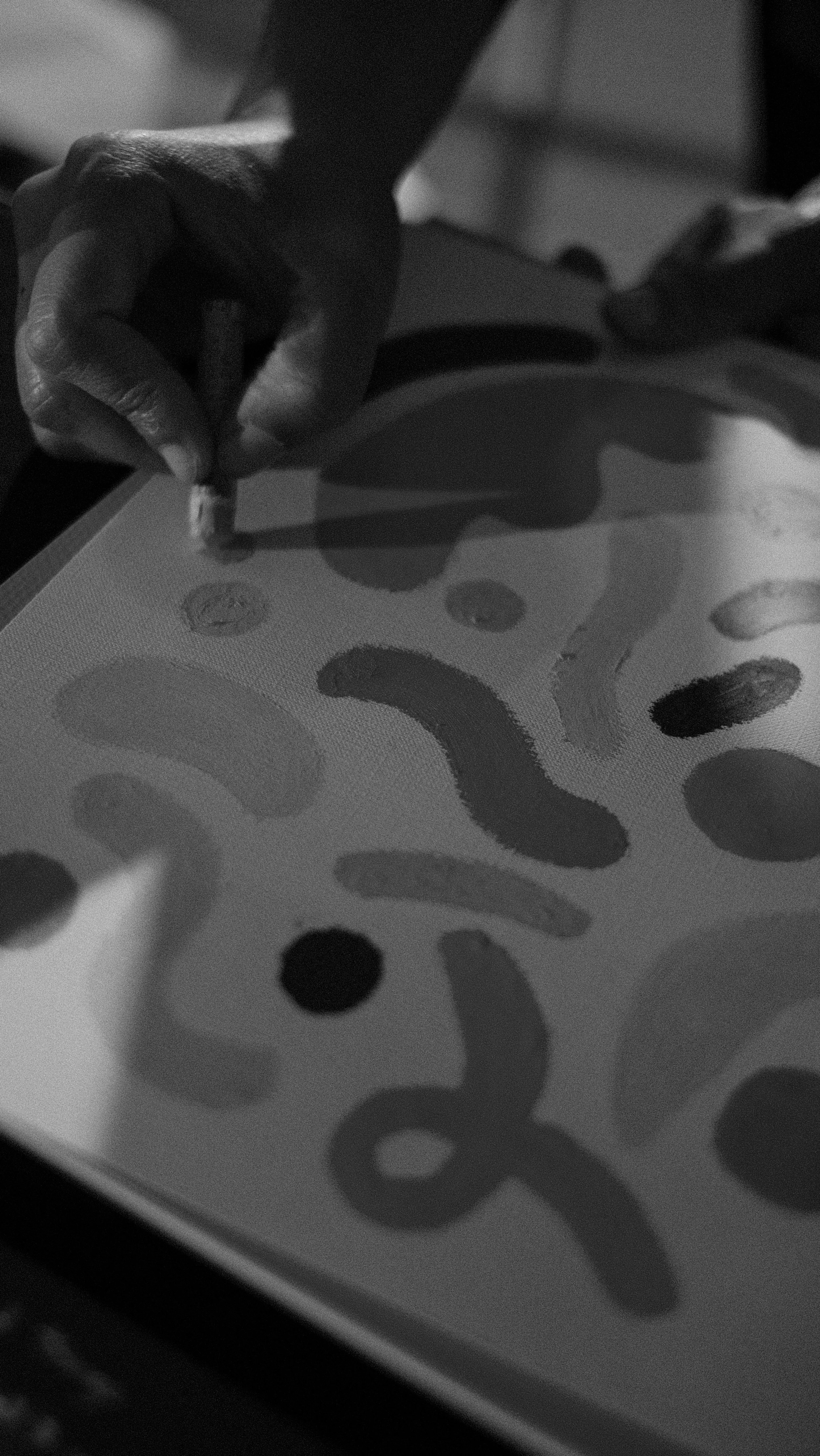 My current work is a vibrant exploration of abstract worlds, where bright colors, playful shapes, and tiny figures come together to evoke narratives about human experiences. I am particularly drawn to themes of isolation, uncertainty, and the emotions that exist beneath the surface of everyday life, while being surrounded by a world that often expects happiness and productivity at all times. These abstract worlds are primarily created with oil pastels and other textural materials. The process is intricate and precise, with little room for error. Shading and the reflection of light are achieved by rubbing oil pastels with my fingers, adding depth to each form.